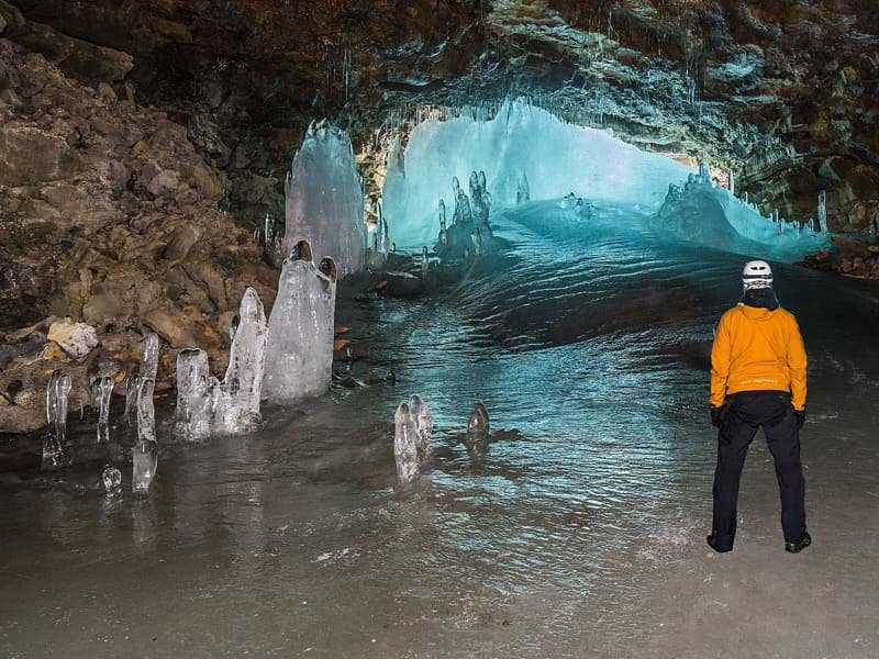 Lofthellir Ice Cave is a permafrost, lava tube-Ice-Cave, boosing incredible ice formations, some hundreds of years old.